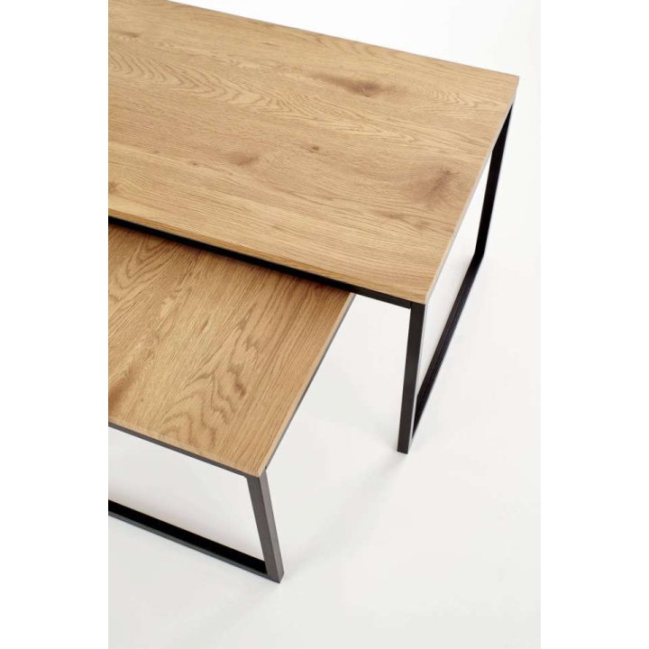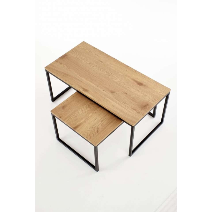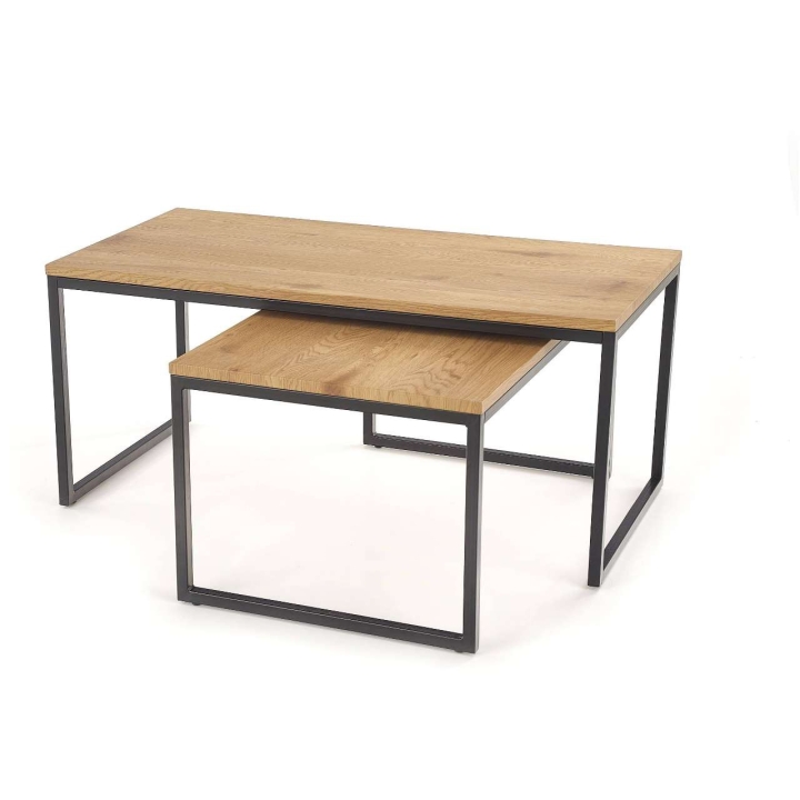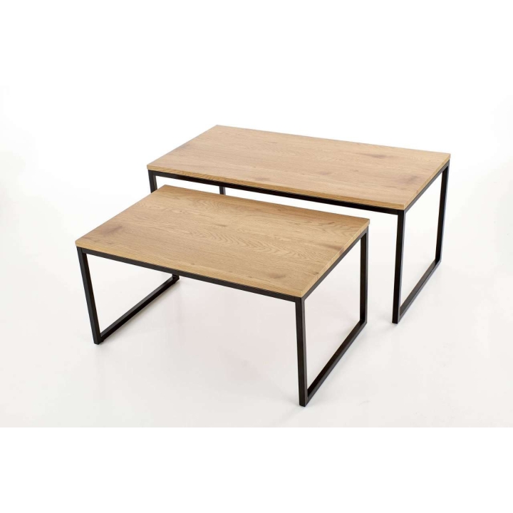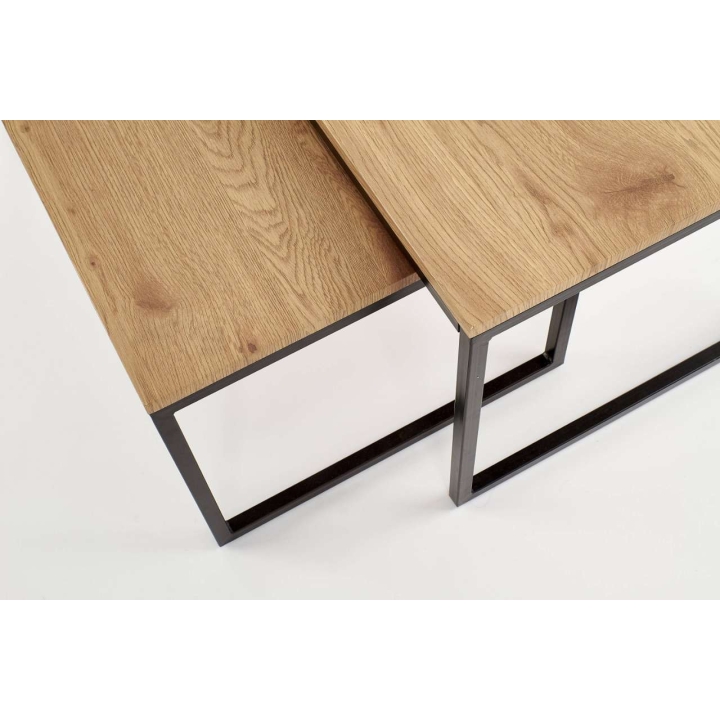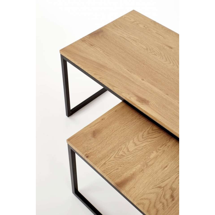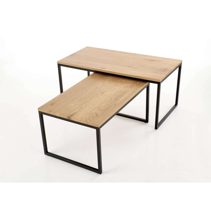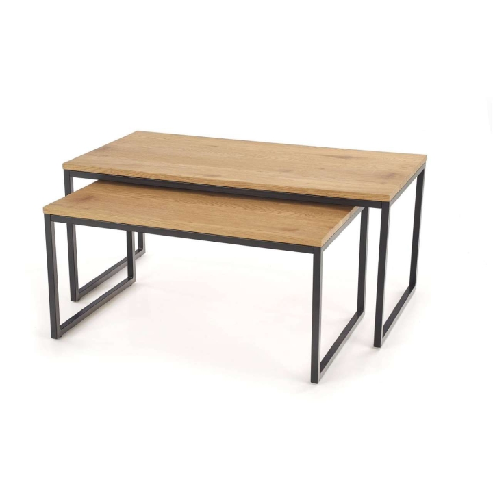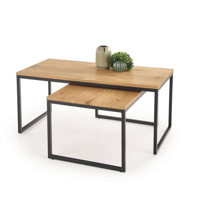 set of 2 benches, dimensions: 100/50/45 cm and 80/50/40 cm, material: MDF laminated / powder-coated steel, colour: golden oak - black