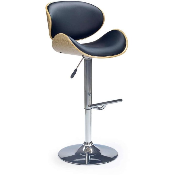 dimensions: 53/48/93-115 cm, material: chromium-plated steel / bent plywood / eco leather, colour: wood - light oak, eco leather - black