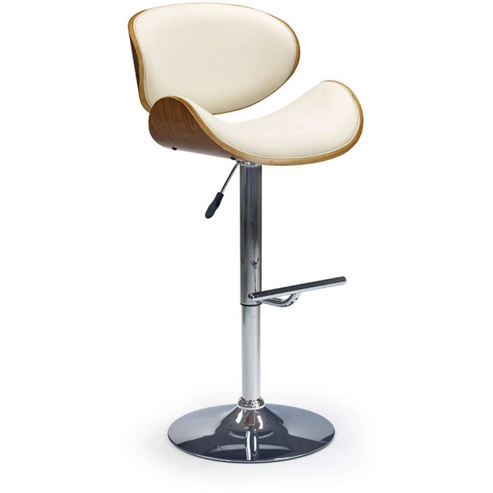 dimensions: 53/48/93-115 cm, material: chromium-plated steel / bent plywood / eco leather, colour: wood - walnut, eco leather - cream