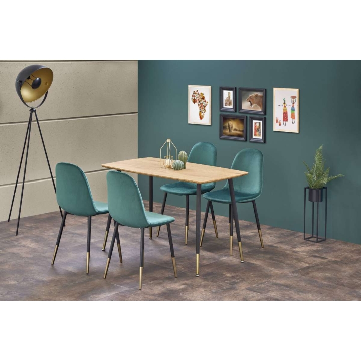 dimensions: 120/70/76 cm, material: MDF veneer / powder-coated steel / chrome-plated steel, colour: table top - golden oak, legs - black / golden