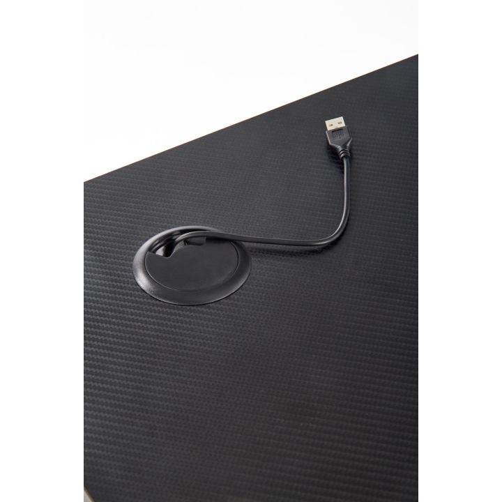 Halmar B40 gaming desk was designed for people who appreciate modern design and comfort during long hours in front of the computer. The structure is based on a stable frame made of powder-coated steel, and the top is made of durable MDF covered with veneer. The desk is kept in a black and red colour scheme, which fits perfectly with the atmosphere of gaming workstations.