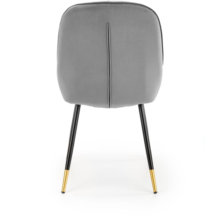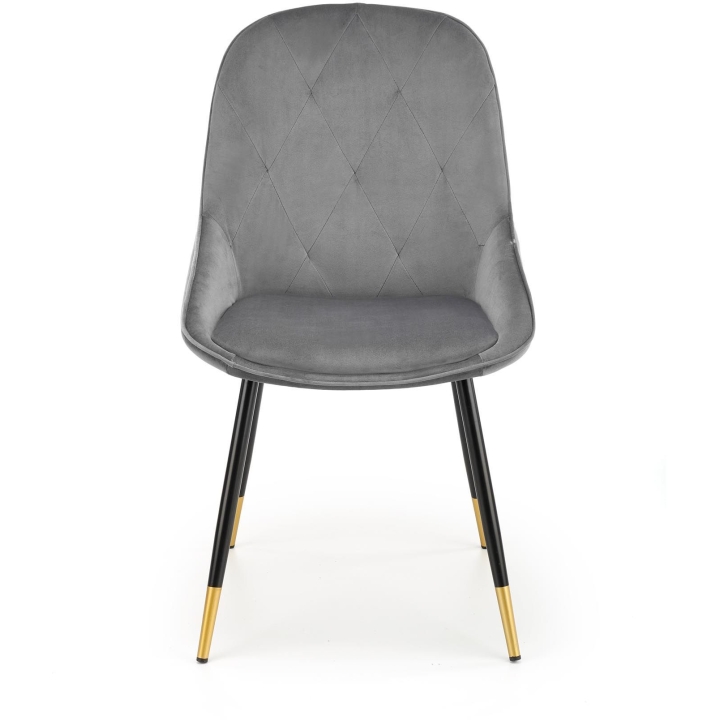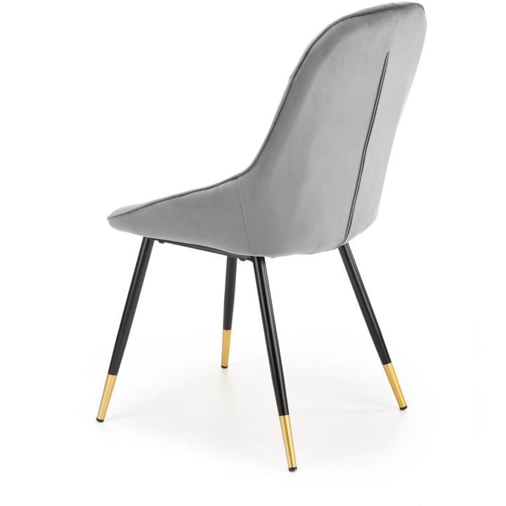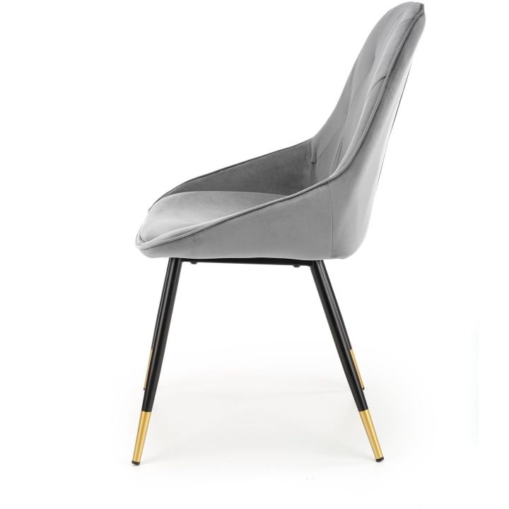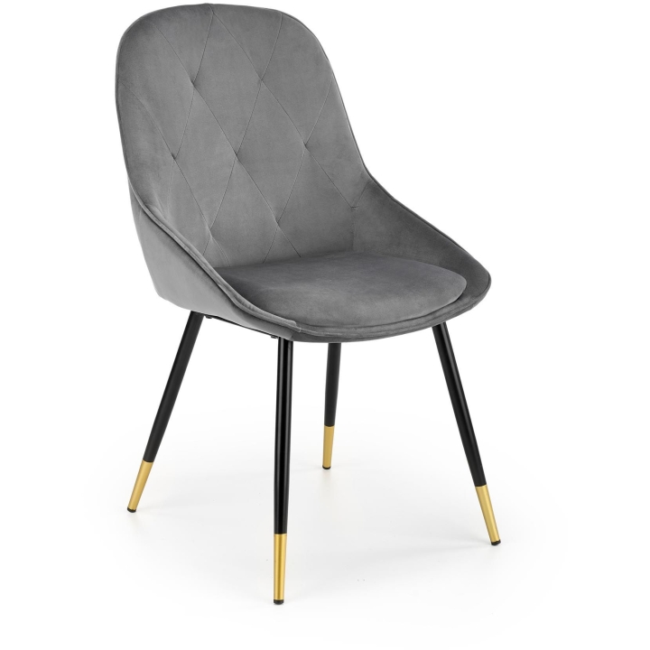 Design: ash-coloured fabric, black powder-coated steel legs with gold trim.
