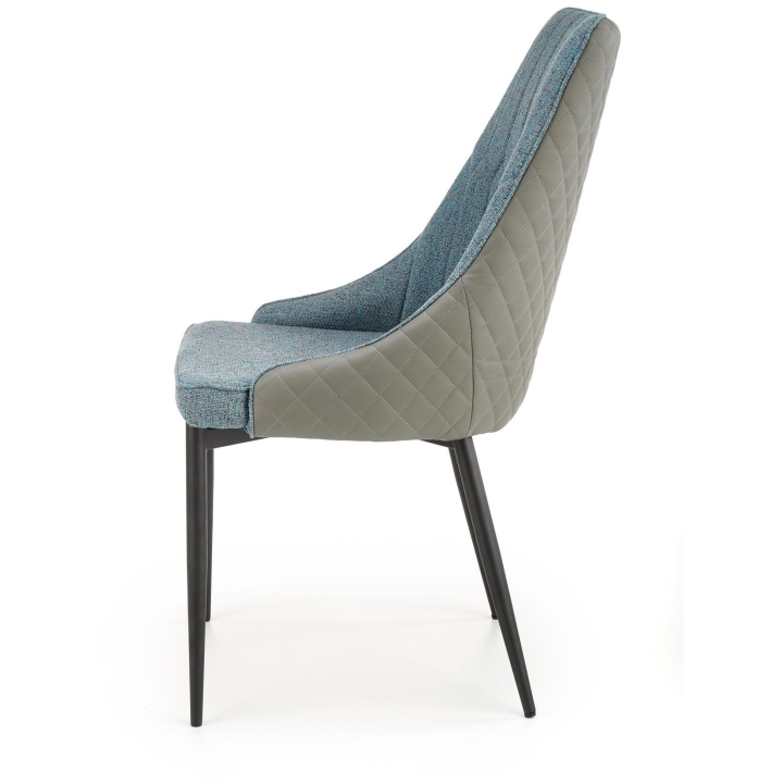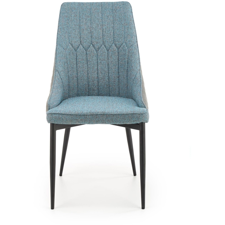 Design: ash-coloured fabric, backrest in eco leather, powder-coated steel legs.