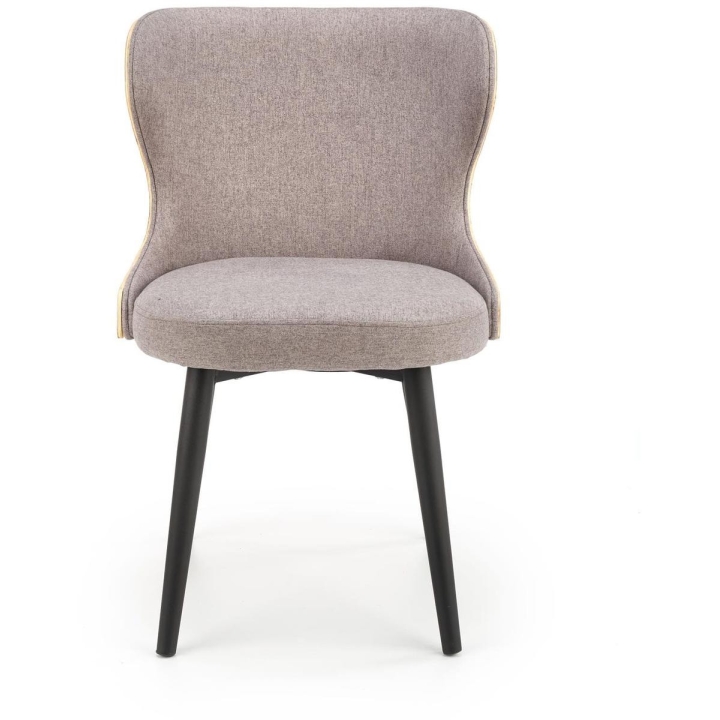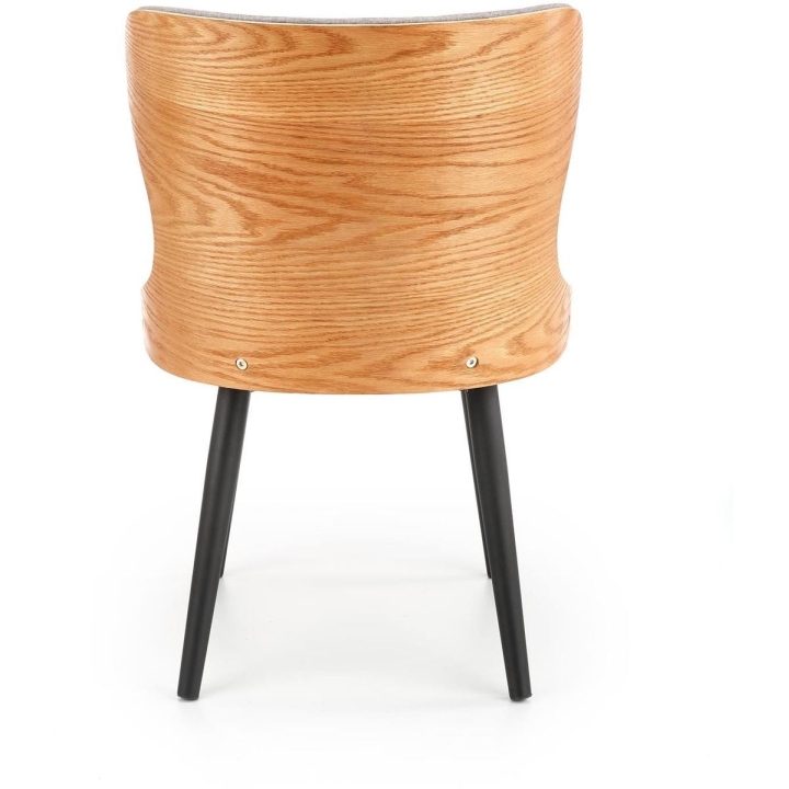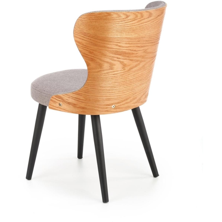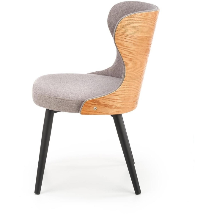 Design: grey fabric, bent plywood + natural veneer, powder coated steel.