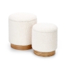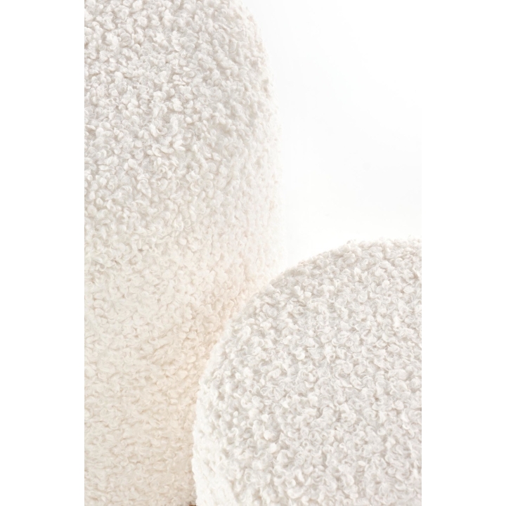 Are you looking for a stylish addition to your living room? Then opt for a set of two poufs, which will provide a comfortable place to rest as well as become a stylish decoration of the interior. In addition, the pouffe has a capacious storage compartment where you can keep all your essentials. The pouffe will find its perfect place in a boho or Scandinavian style interior. Additionally, the boucle fabric will bring a touch of luxury and elegance to the interior. It looks beautiful in various types and decorating styles, but will always bring a touch of dignity to them. In addition, the fabric is exceptionally soft and pleasant to the touch. The fabric in this colour will beautifully emphasise the elegance of dark brown furniture, at the same time optically warming the interior and giving it a stylish, classic character. After all, the pouffe can be used as a table, footstool or simply as an additional seating area.