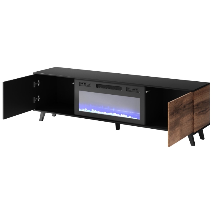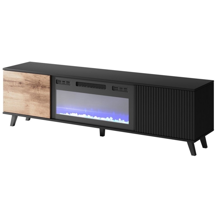 The Random RTV-K 180 cm RTV table with fireplace from manufacturer Halmar is a unique combination of modern design and cosy atmosphere. With dimensions of 180 cm wide, 40 cm deep and 52 cm high, this piece of furniture is perfect for larger spaces, becoming an attractive focal point. Made from solid materials such as veneered MDF and laminated board, in oak wotan and black, it looks phenomenal and its finishes guarantee durability for years to come.