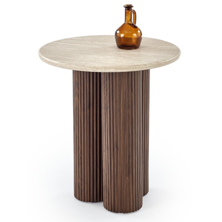 The Dorotea bench from Halmar is a combination of subtle aesthetics and solid workmanship. The round top with a diameter of 50 cm is made of MDF and covered with a veneer inspired by natural stone in the shade of travertine. Its surface attracts the eye with a delicate drawing that gives it a unique character.