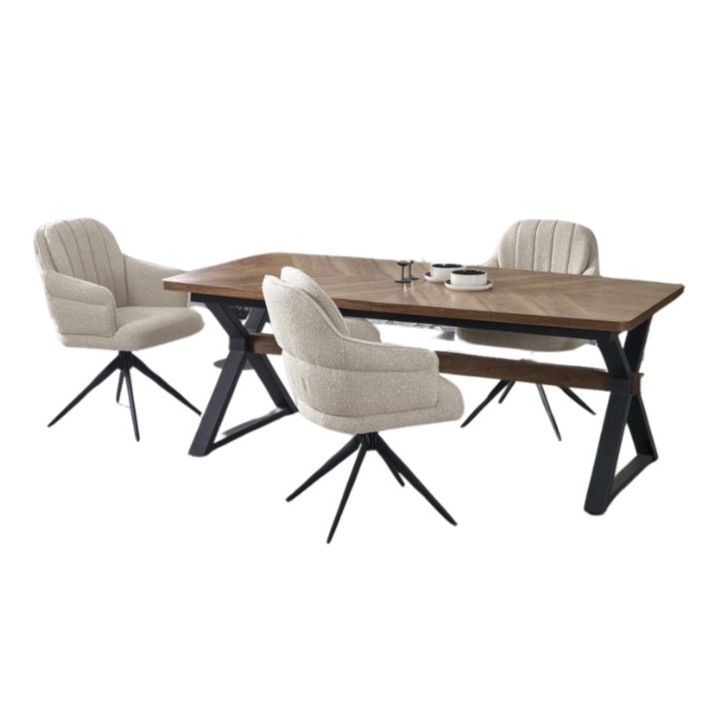 The extendable design of the table allows the table top to be extended from 200-350 cm, so it can easily accommodate 6 to 10 people. Thanks to the simple extension system, you can quickly adjust the size to suit your current needs. The walnut shade of the top gives it a universal character that will fit in with Scandinavian, boho and modern arrangements.