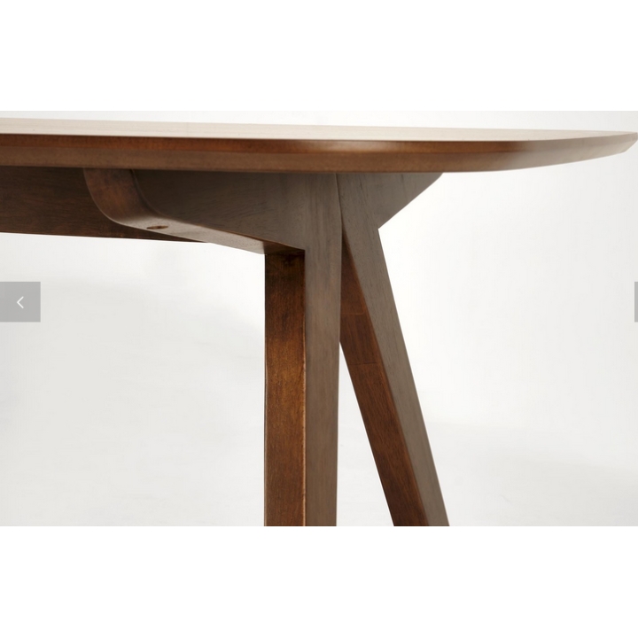 Miguel table from the manufacturer Halmar. The dimensions of the furniture are 160 cm long, 90 cm wide and 75 cm high. Wooden frame. Rectangular top, finished in natural veneer, rubber legs, walnut colour. A piece of furniture ideal for the dining room or living room.