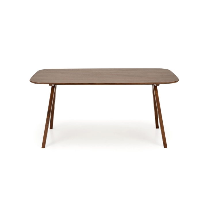 The Migueltable from Halmar isan elegant piece of furniture that combines modern design with the classic charm of wood. In walnut colour, it presents itself very elegantly. Its rectangular table top measuring 160 cm long, 90 cm wide and 75 cm high is made of MDF covered with natural veneer in a warm shade of walnut. The rounded corners of the table top add subtlety and make it safer to use, especially at home with young children. The solid legs of the table, made of solid rubber wood in the same walnut colour, are set at a slight angle, which gives the structure stability and a modern feel. The Miguel table is non-folding, which ensures that it always maintains its proportions and aesthetic appearance. It provides comfortable seating for six people, making it an ideal choice for the dining room or living room . Thanks to its universal design and warm colours, the Miguel table will fit perfectly into both modern and classic interior settings, becoming the focal point of the dining room or living room.