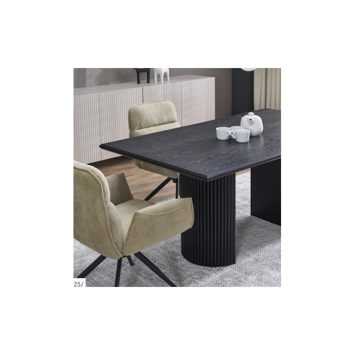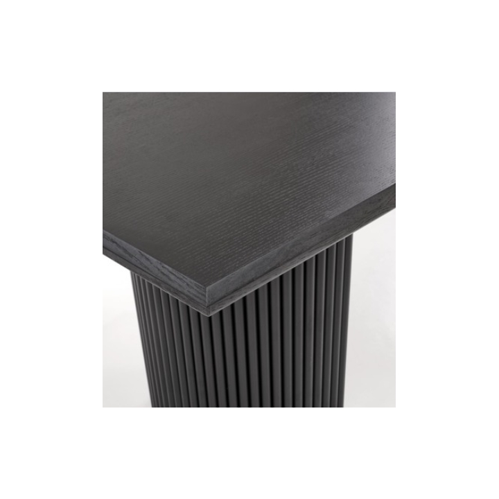 Bolero fits in perfectly with current interior trends. Its black top retains a modern, elegant character. The solid black powder-coated metal base contrasts with the woodgrain finish of the table top, giving the table a distinctive industrial style. This contrast makes the table a perfect match for both loft-style, modern and Scandinavian interiors.