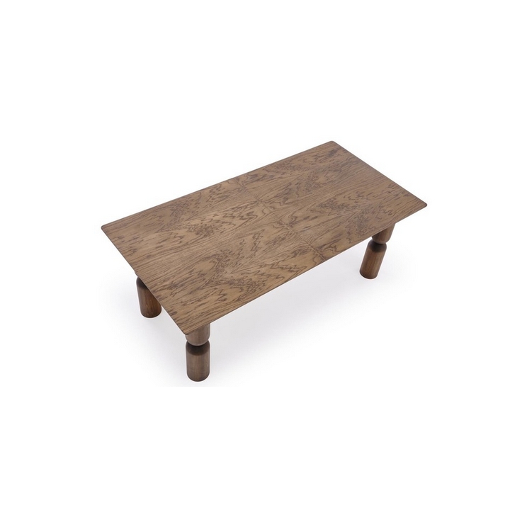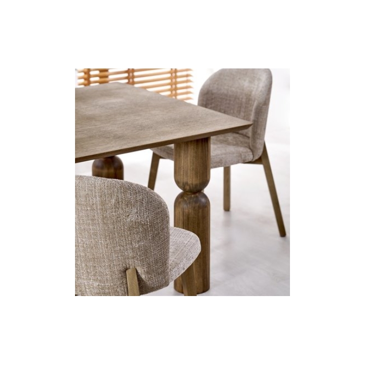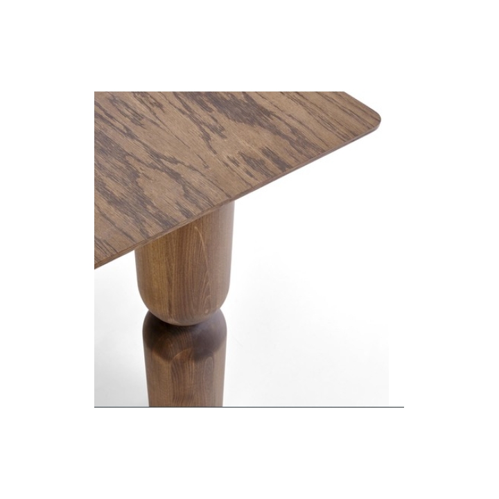 The base of the table is made up of embossed wooden legs, the shape of which has been designed to provide maximum stability while maintaining visual lightness and elegance.