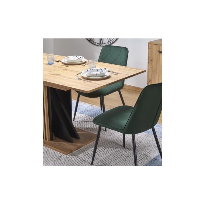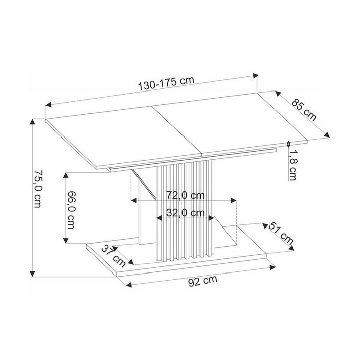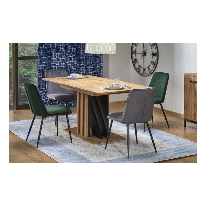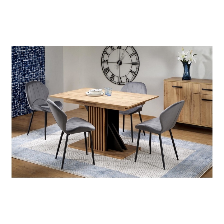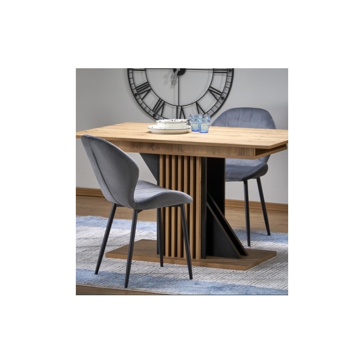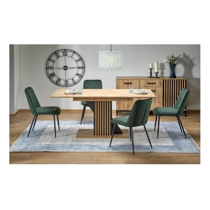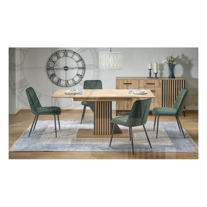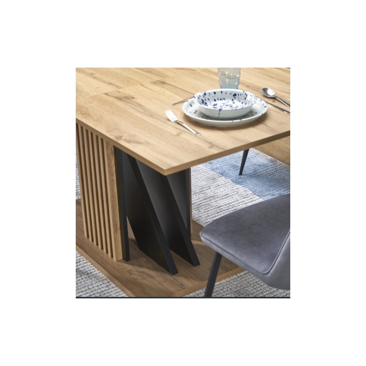 The base of the table is formed by a solid leg with decorative slats, which ensures full stability and durability. Its form gives the whole a harmonious look and makes the furniture look aesthetically pleasing from all sides. Whether you place the table against a wall or in the middle of a room - it will always look elegant and coherent.