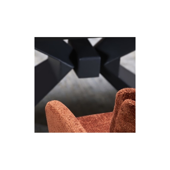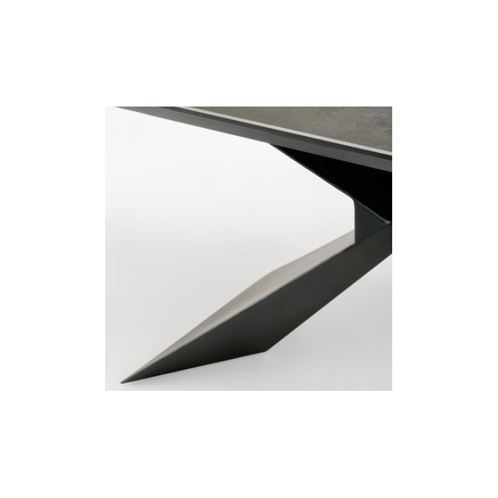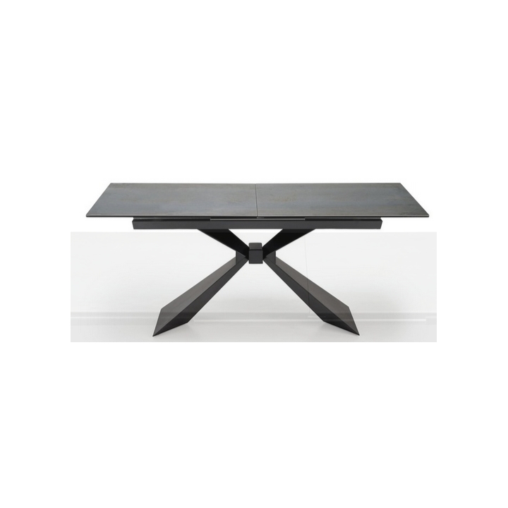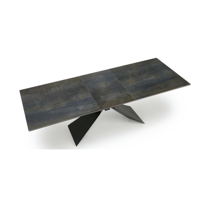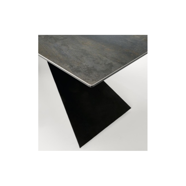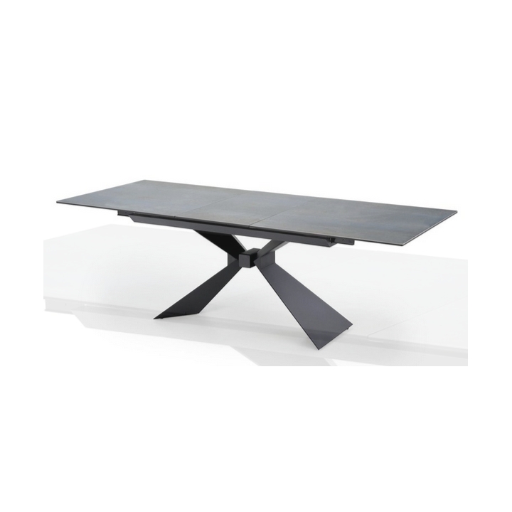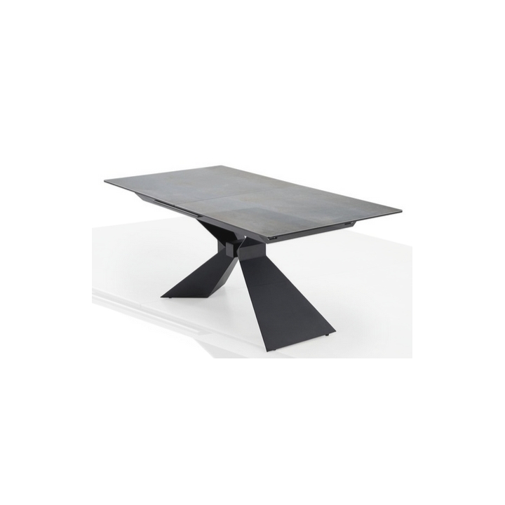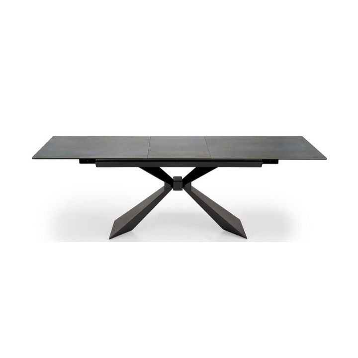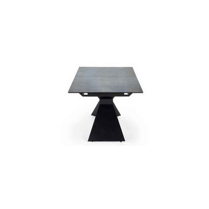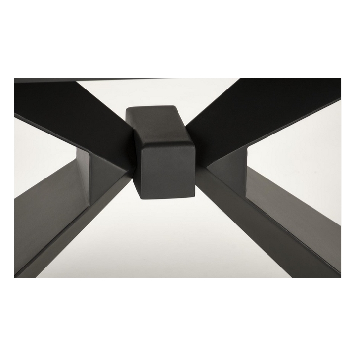 The table's legs are made of durable black powder-coated steel, which adds lightness and an industrial feel to the structure. Their geometric form is eye-catching and creates an interesting counterpoint to the natural finish of the tabletop. Thanks to the use of strong materials, the table is stable and safe even when extended to its maximum extent.
