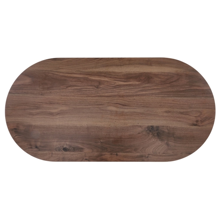 The Perila coffee table, measuring 120 cm in width, 60 cm in depth, and 45 cm in height, is designed as a functional centerpiece for a living room seating area. Its oval tabletop gives the furniture a softer and more inviting appearance, making it easy to integrate into various interior layouts.