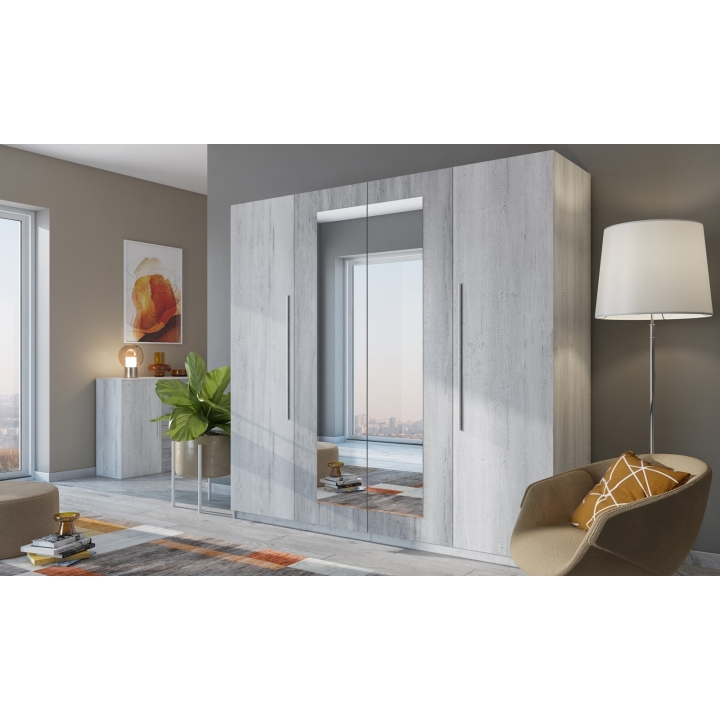 The Vera wardrobe by Helvetia will not only meet your storage needs, but also become a stylish accent to your bedroom. This functional solution will provide plenty of storage space for clothes, accessories and other items. The design of this wardrobe includes four solid doors, two of which are fitted with large mirrors. This will give you the ability to not only store your belongings, but also use the mirror to get ready for the day or evening out. Made from high-quality materials, the wardrobe ensures durability and strength for many years to come. Its carefully designed interior includes a variety of shelves, hanger rods and additional compartments to help you stay organised.