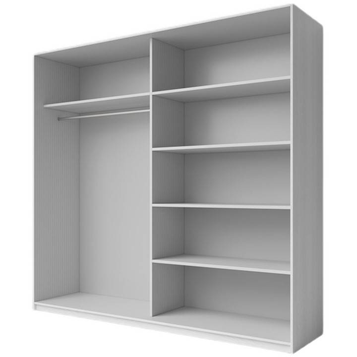 The Galaxy wardrobe by Helvetia which not only optimises the space in your bedroom, but also adds a stylish touch. This functional wardrobe meets your storage needs perfectly, while guaranteeing an elegant finish. The furniture provides easy access to your wardrobe, thanks to two sliding doors that allow for smooth opening and closing. It's ideal for rooms with limited space, as it doesn't require extra space to open the doors. Thanks to the different interior configurations, you can adapt the wardrobe to your individual needs. Shelving cabinets, clothes hangers and additional compartments allow you to store your clothes, footwear and accessories in an organised manner, giving you maximum functionality.