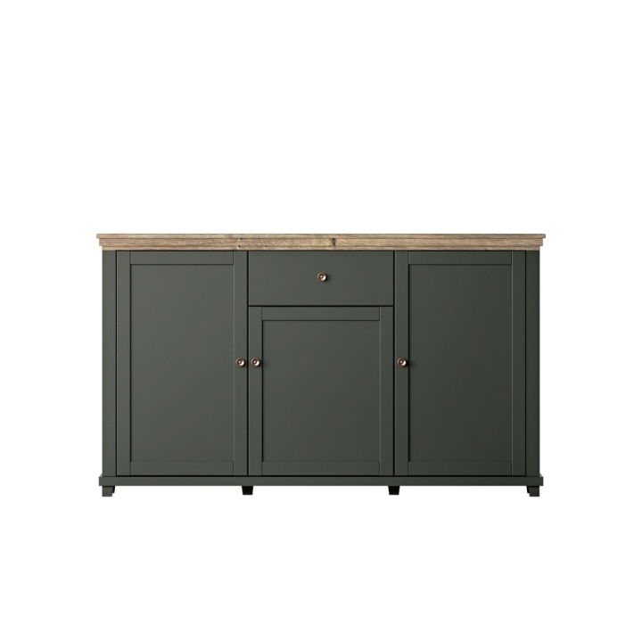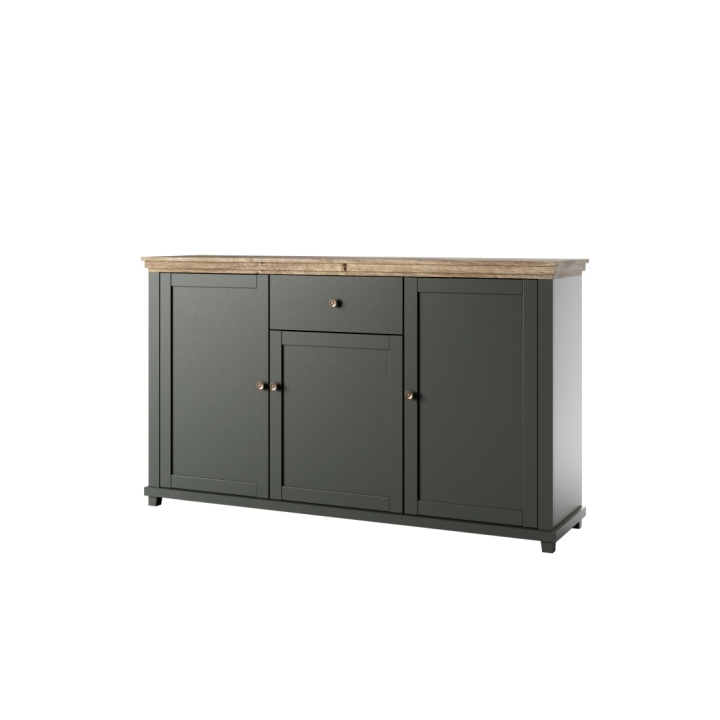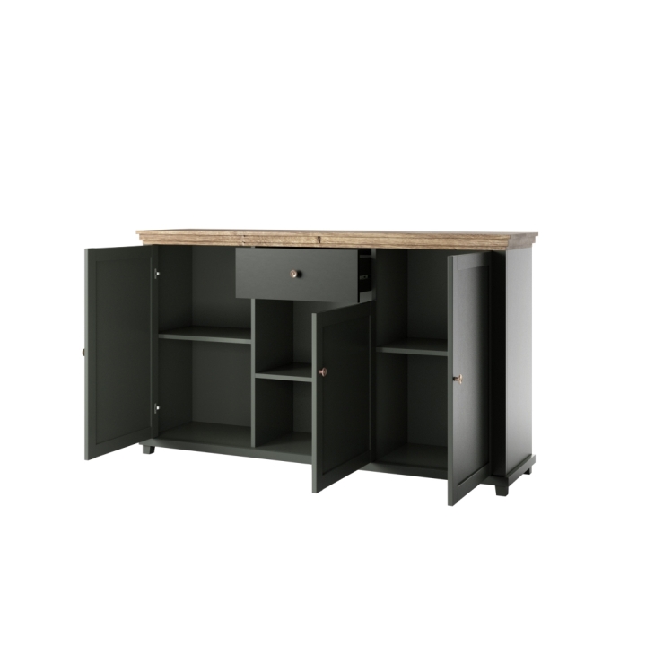 The Type 47 chest of drawers from the Evora collection by the manufacturer Helvetia Wieruszów will be perfect for classic arrangements. If you need a lot of space to organise your life's possessions, this chest of drawers will certainly meet your requirements. The furniture has as many as six lockable shelves to accommodate all your tableware. The drawer in the central part of the furniture is perfect for storing all the trinkets scattered around the house. The body of the chest is made of furniture board, while the fronts are made of MDF. The overall appearance is very chic and the unusual colour of the furniture makes it unique. The chest of drawers is equipped with brass handles which harmonise perfectly with the whole. As a complement to your interior, you can also buy a shelf from the same collection.