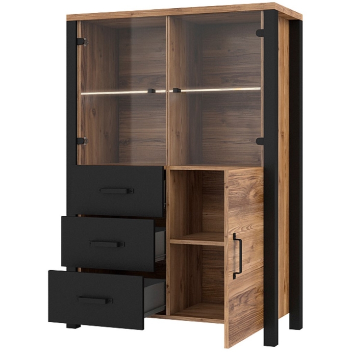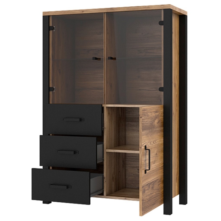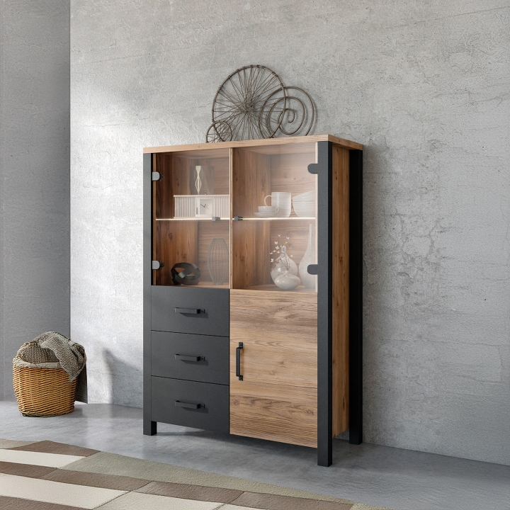 The Olin vitrine from the Helvetia manufacturer is a modern-style piece of furniture that adds elegance and functionality to an interior. Its minimalist design, clean lines and careful craftsmanship make it a unique design element. Made of high quality materials, the modern style display cabinet is solid and durable. Its glazed doors allow you to display and beautifully showcase your favourite items, adding a unique touch. The modern style display cabinet is not only a practical storage solution, but also an aesthetically pleasing decorative element. Its clean form, minimalist finish and functional shelves create a harmonious composition, adding elegance and style to your interior.