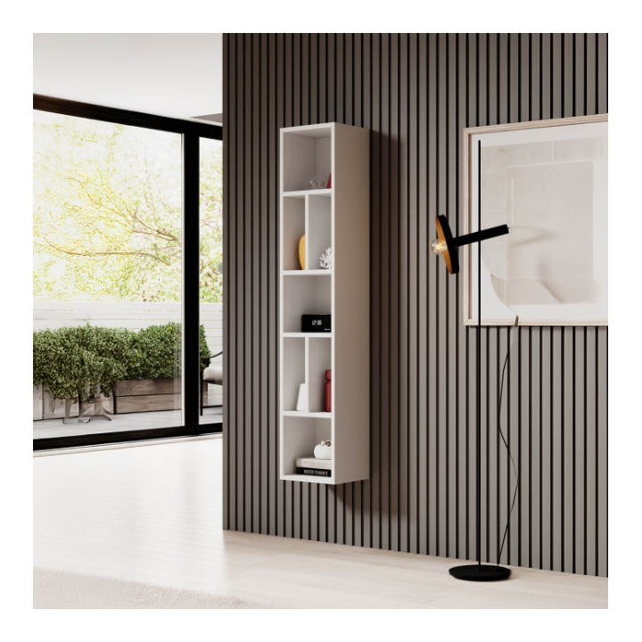 It offers a large storage area for a variety of items such as books, ornaments or collectibles. Thanks to its design, you place it on the wall, saving valuable floor space.