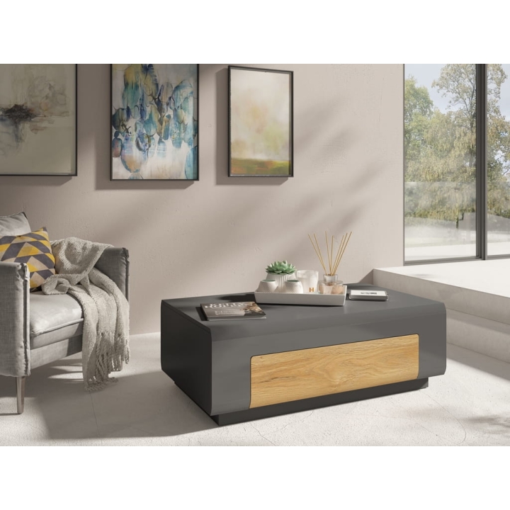 This coffee table is not only functional, but also a stylish decorative element. Its minimalist design, clean lines and careful details create a harmonious composition, adding elegance and character to your interior. Without a doubt, the coffee table with drawer will become the focal point of your living room, attracting attention and adding a unique charm.