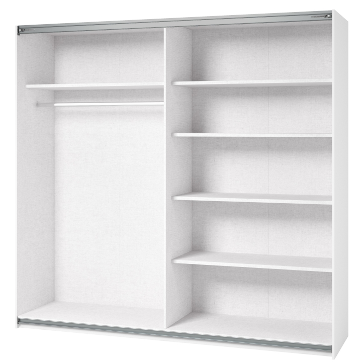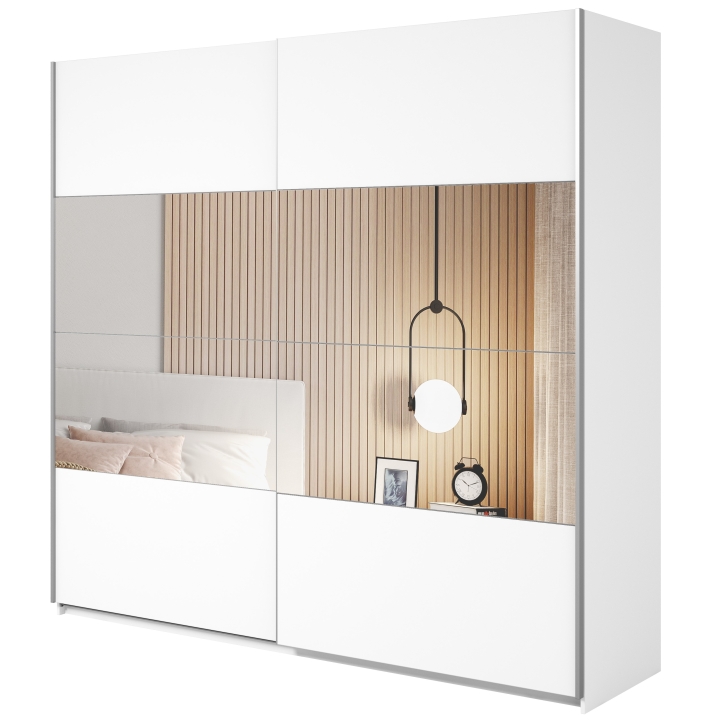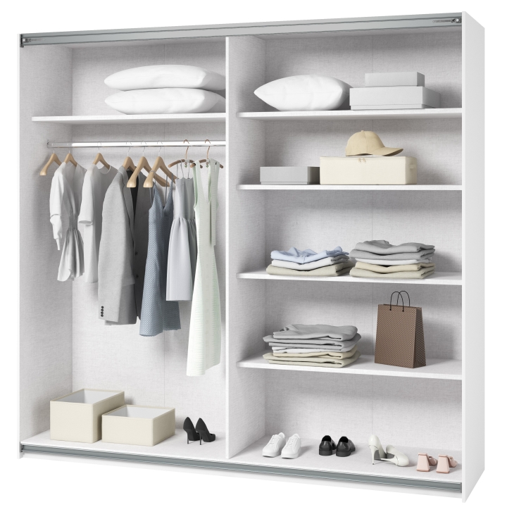 The Beta wardrobe by Helvetia is a piece of furniture that is ideal for those looking for a functional and space-saving piece of furniture. Its innovative sliding door mechanism saves space in the room while providing convenient access to stored items. This piece of furniture is not only practical, but also aesthetically pleasing through its minimalist design, large mirror and carefully finished details that add elegance and style to the interior. The functional wardrobe allows you to store clothes, shoes, accessories and other items in an organised and easily accessible manner.