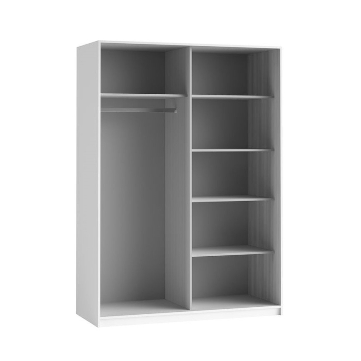 The Beta wardrobe by Helvetia is the perfect storage solution to save space and give your interior a modern style. The main advantage is the sliding doors, which make opening and closing the wardrobe convenient and easy. This piece of furniture offers plenty of storage space for your clothes, accessories and other items. Thanks to the various shelves, hangers and drawers, you can carefully organise your belongings and keep things tidy. In addition, the mirrored wardrobe doors optically enlarge the space in the room and add elegance.