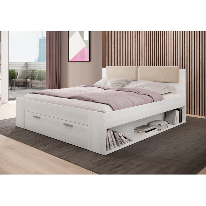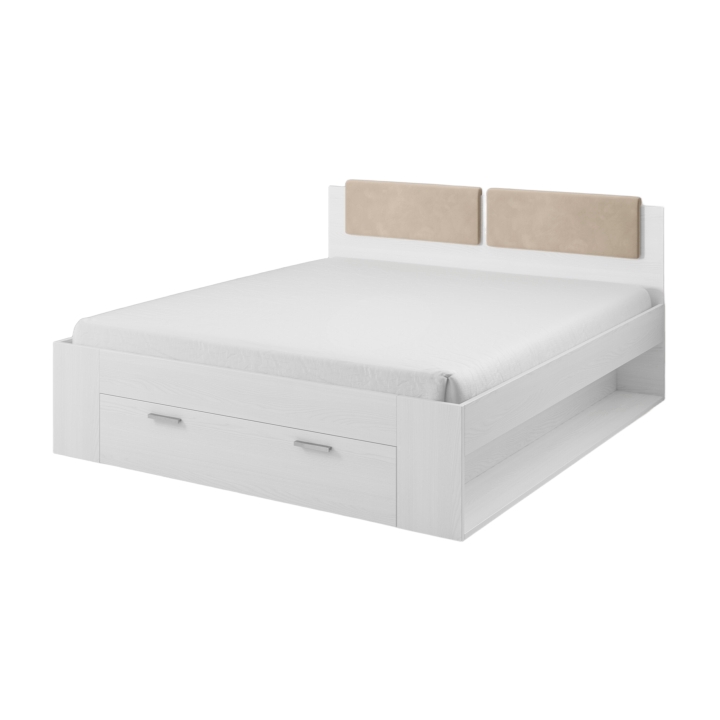 The Galaxy bed by Helvetia is a combination of style, comfort and elegance. Its sturdy construction and careful finishing ensure not only a comfortable place to sleep, but also an aesthetic addition to your bedroom. It features a capacious front drawer and a shelf in the side section.Thanks to its high-quality construction, the headboard is durable and long-lasting. This bed is a combination of aesthetics and comfort that enhances the character of your bedroom. Its unique design and adaptation to different design styles make it a focal point in the bedroom, while providing comfort and relaxation after a long day.