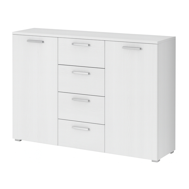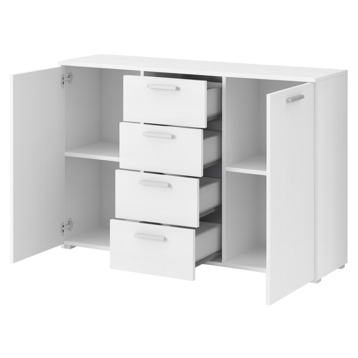 The Galaxy chest of drawers by Helvetia is a versatile piece of furniture and is used not only to store things but above all to decorate a room. This piece of furniture from the Galaxy collection is an innovative look at the style and unique modern design, which makes it perfect for any room giving it an original atmosphere. Like every piece of furniture belonging to the Galaxy collection, it is characterised by high quality workmanship and resistance to scratches, moisture and temperature changes. The chest has two independent cabinets with shelves and four capacious drawers capable of holding various items or accessories.
