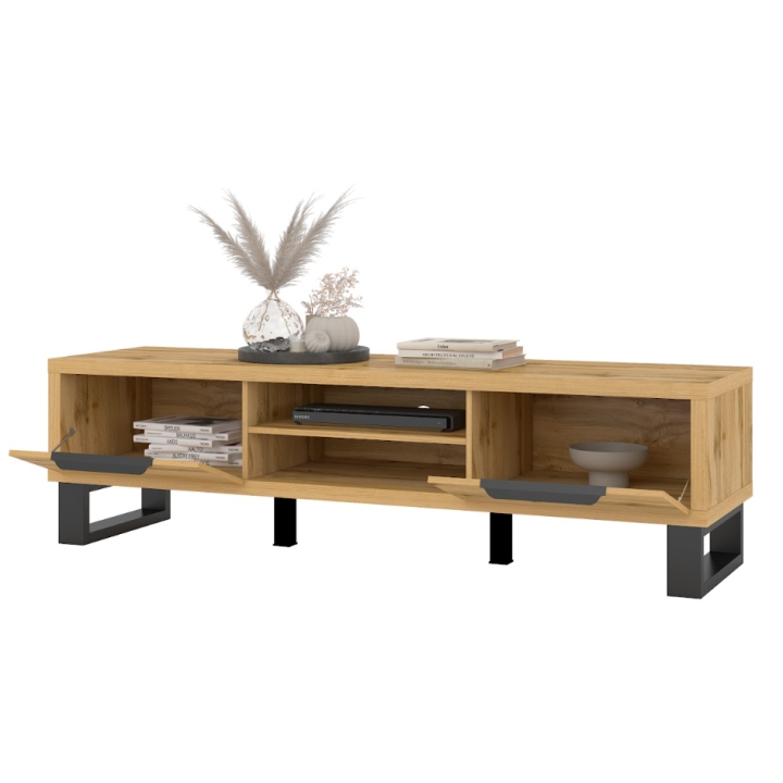The Halle RTV chest of drawers by Helvetia is the perfect solution for storing audio-video equipment and decorations in the living room. Made of solid materials, the RTV chest provides not only functionality, but also an aesthetic appearance. It has adequate compartments and shelves that will help organise cables, remote controls and other small accessories related to electronics. Thanks to its universal colour scheme and minimalist design, the RTV chest of drawers blends in perfectly with various interior design styles. You can easily match it to your living room, whether you prefer modern, Scandinavian or classic decor. In addition, the RTV chest of drawers has appropriately designed cable holes to keep cables neatly routed and hidden from view.