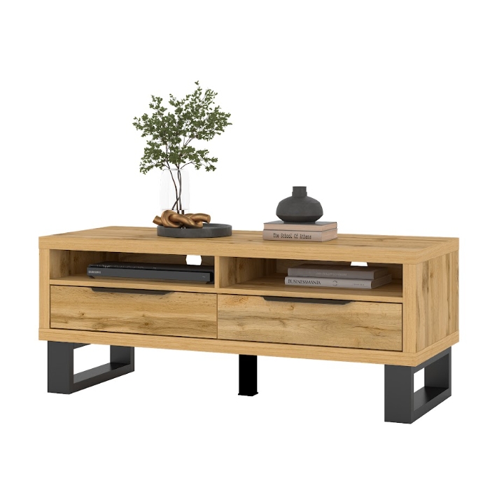 Made of solid materials, the RTV chest provides not only functionality, but also an aesthetic appearance. It has adequate compartments and shelves that will help organise cables, remote controls and other small accessories related to electronics.