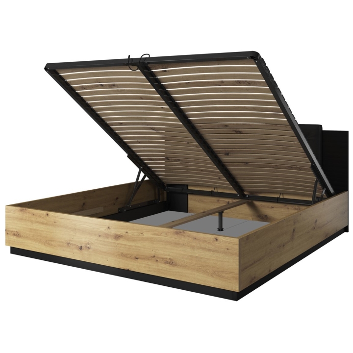 Thebed with storage compartment and solid frame by Helvetia combines style, comfort and practicality. Equipped with a capacious storage compartment, the bed offers additional space for storing bedding, duvets and other items, keeping your bedroom tidy. The bed frame is sturdy and durable, providing stable support for the mattress and comfortable and ergonomic support for your body. You can be sure that a bed with a storage box and frame will meet your expectations in terms of comfort and durability. This bed is not only a practical storage solution, but also a stylish design element for your bedroom. Its elegant design and careful craftsmanship add character and sophistication to your sleeping space. Combining functionality with aesthetics, the bed with storage and frame will become the focal point of your bedroom, providing both comfort and practicality.