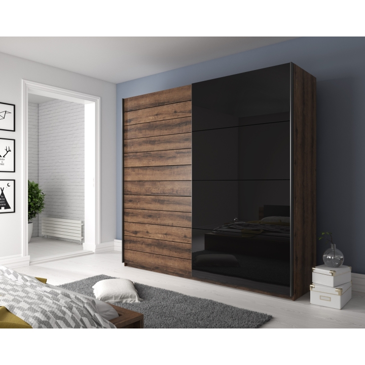 The Galaxy wardrobe by Helvetia which not only optimises the space in your bedroom, but also adds a stylish touch. This functional wardrobe meets your storage needs perfectly, while guaranteeing an elegant finish. The furniture provides easy access to your wardrobe, thanks to two sliding doors that allow for smooth opening and closing. It's ideal for rooms with limited space, as it doesn't require extra space to open the doors. Thanks to the different interior configurations, you can adapt the wardrobe to your individual needs. Shelving cabinets, clothes hangers and additional compartments allow you to store your clothes, footwear and accessories in an organised manner, giving you maximum functionality.