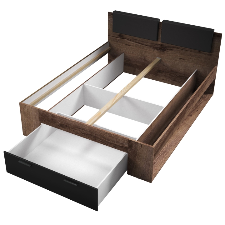 The Galaxy bed by Helvetia is a combination of style, comfort and elegance. Its sturdy construction and careful finishing ensure not only a comfortable place to sleep, but also an aesthetic addition to your bedroom. It features a capacious front drawer and a shelf in the side section.Thanks to its high-quality construction, the headboard is durable and long-lasting. This bed is a combination of aesthetics and comfort that enhances the character of your bedroom. Its unique design and adaptation to different design styles make it a focal point in the bedroom, while providing comfort and relaxation after a long day.