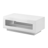 The Tulsa Type 99 Helvetia coffee table is a modern bench with a rectangular top, which will be perfect as a complementary piece of furniture in the living room. Made of laminated furniture board, the body of the furniture is set on a low plinth, which adds visual lightness to the piece despite its solid character. The combination of the white gloss with the matt finish of the side surfaces creates an aesthetic and coherent composition.