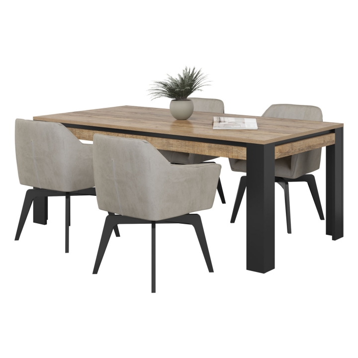 The Tudor 24WSNZ94 table is a 195 cm long, 77 cm high and 100 cm wide model. The top is made of furniture board in samdal oak décor, which reproduces natural, dark wood with visible grain. The surface is matt and uniform, without unnecessary ornamentation, which fits in with the aesthetics of the entire Tudor collection.