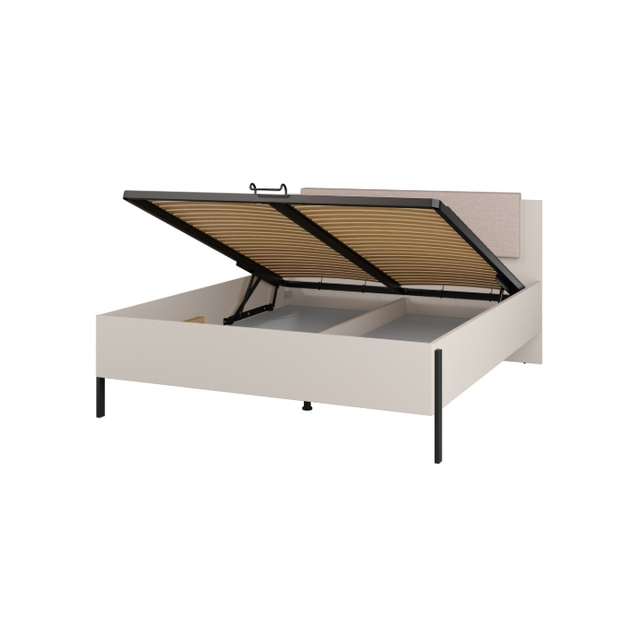 The bed is fitted with a metal frame with gas lift. Elastic slats support the mattress and improve sleeping comfort, and there is a roomy storage compartment underneath - although this particular model does not include a storage compartment, the frame can be used with a standard thickness mattress and an optional topper.