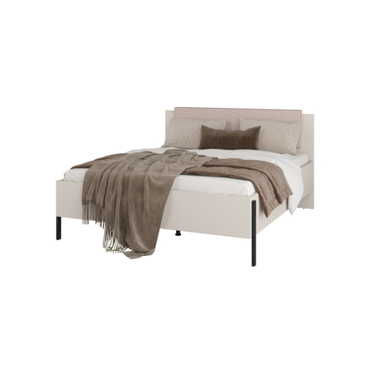 The construction is based on a compact body made of cashmere-coloured furniture board, without decorative accessories. The surfaces are smooth, matt, without gloss, and all edges are finished with a simple geometry. The headrest is full height and extends the full width of the bed - it can be pushed directly against the wall to create a clear end to the unit.