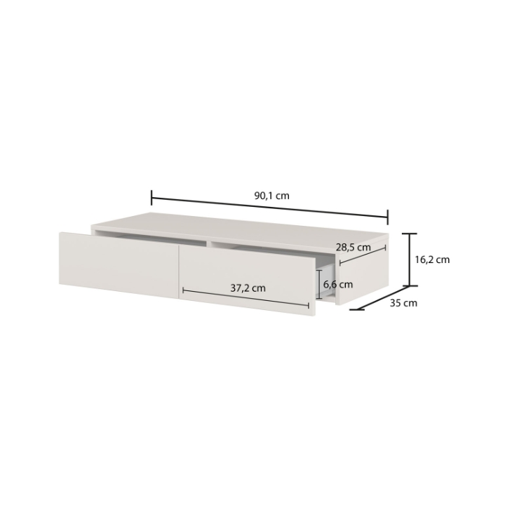 The front and body are made of furniture board in a uniform matt. The smooth surface, lack of handles and neutral colours make the dressing table fit well into minimalist and monochromatic arrangements. Combined with other furniture from the Jukon collection, it allows to create a coherent interior without visual overload.