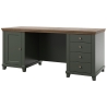 Desk Evora 1D4S Type 07 from the manufacturer Helvetia Wieruszów is a proposal created for spaces decorated in the classical spirit. The combination of dark green with the shade of oak lafkas gives it expressiveness and emphasizes the character of the interior. The Evora collection will find its place both in the study and in the living room or spacious dining room.