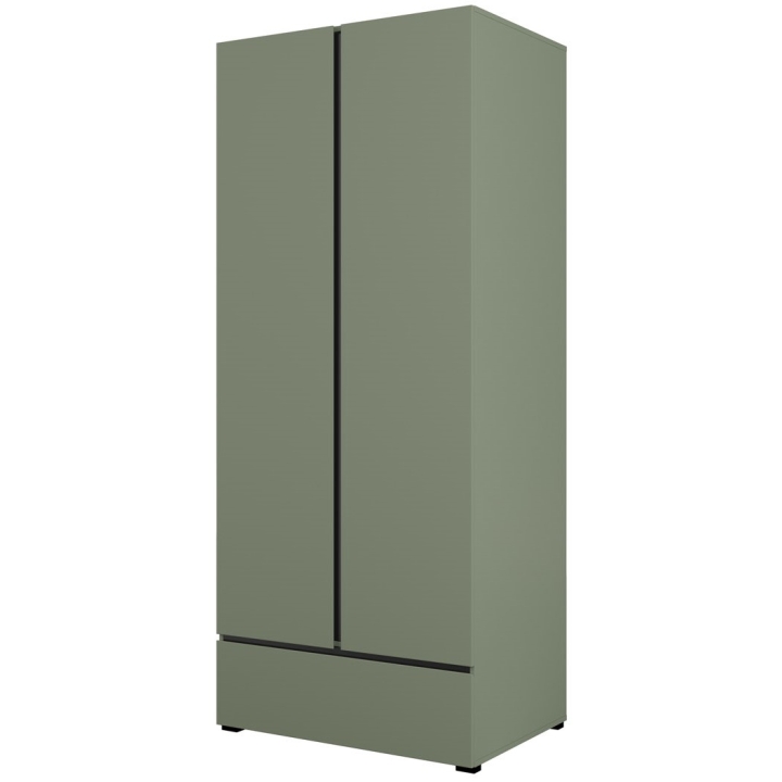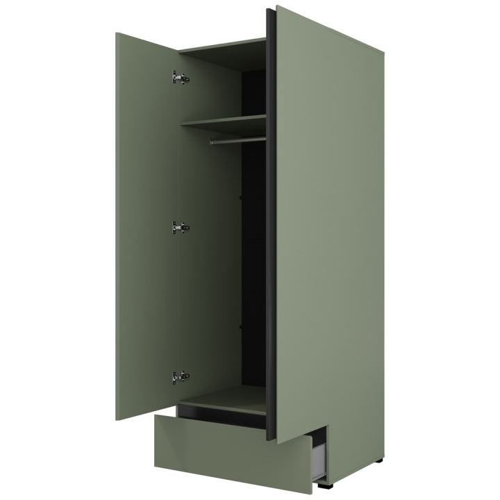The closet is available in four color options: extinguished green, white, congo and oak wotan. Each of them has been juxtaposed with accents in a shade of black, which gives the whole a distinctive character. The varied color palette makes it possible to adjust the furniture to individual preferences.