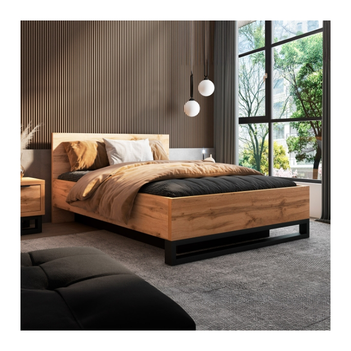 Bed 160 Type 51 from the Halle S collection by Helvetia is designed in the aesthetics of the loft, where the contrast of black with light wood creates a unique atmosphere of the interior. Wotan oak coloration with a clear grain pattern gives it authenticity and emphasizes the noble character of the material. This is a piece of furniture that attracts attention with its form and brings a unique accent to the bedroom.