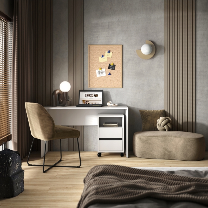 The Agapi desk and pedestalset by Helvetia Wieruszów is a proposal created for home or office space, where comfort of work and solid workmanship counts. Both elements are maintained in a modern form, and their white matte body emphasizes simplicity and clean aesthetics. The entire piece is designed for self-assembly, which gives you the opportunity to easily adjust the furniture already at the place of use.