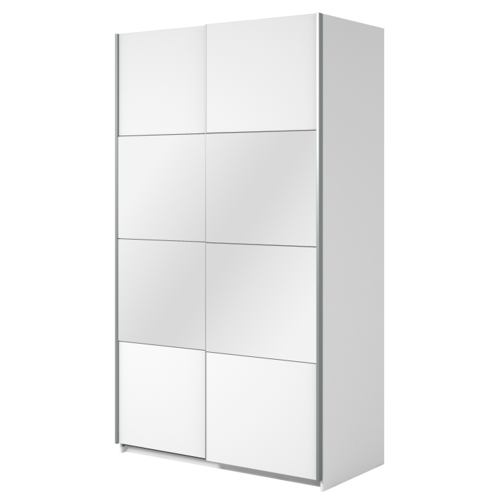 The body was made of resistant furniture board, ensuring the longevity and solidity of the structure. The front is decorated with a spacious mirror, consisting of 4 panels that form a uniform sheet. This solution allows not only to use the furniture comfortably, but also introduces an additional impression of spaciousness in the room.