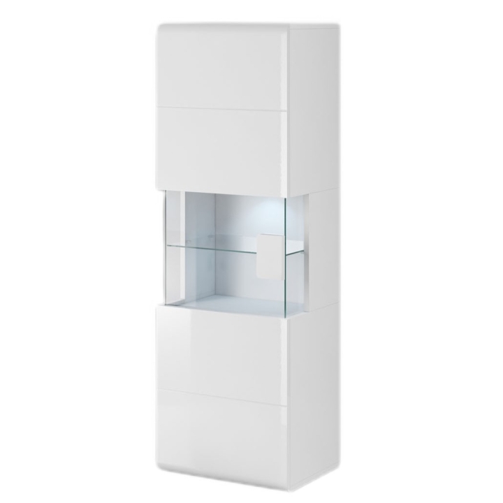A solid furniture board was used in its production, while ABS edging was used in visible parts to increase resistance to damage. The front is partially glazed, behind it is hidden 1 shelf made of glass. The remaining 4 shelves - two in the upper zone and two in the lower zone - are hidden behind a full panel, which promotes orderly storage.