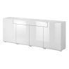 The furniture body measures 208 cm in width, 82 cm in height and 39 cm in depth, so it offers impressive usable space. The three-door design conceals inside cabinets equipped with additional shelves, which increase organizational possibilities. In turn, the wide drawer in two color variants is distinguished by an oak or white finish as a decorative detail.
