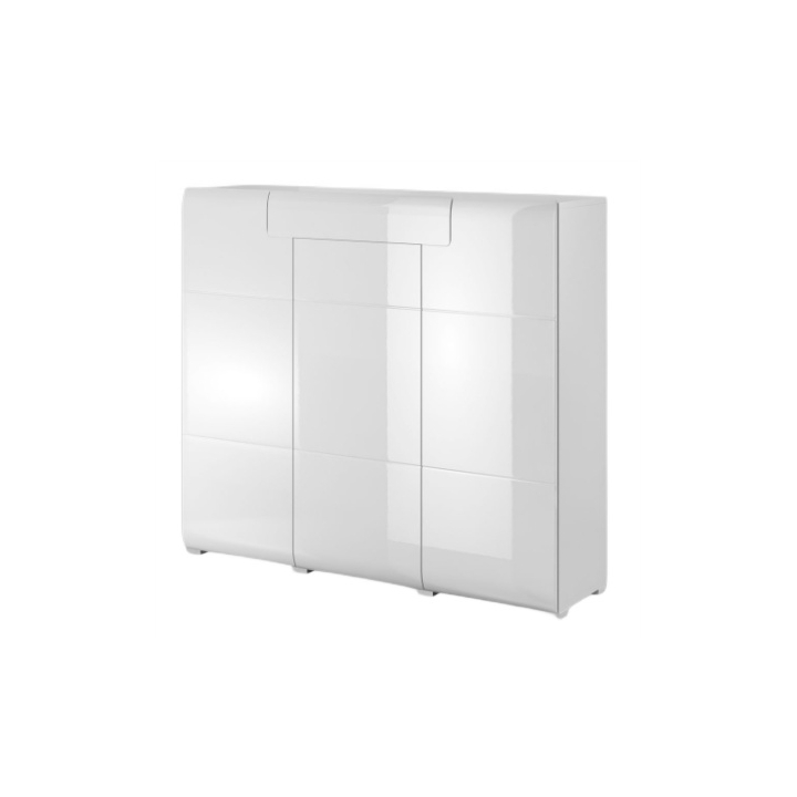 Behind the three fronts there are a total of 8 shelves, two of which, placed in the upper part, form small storage compartments for small accessories. The remaining shelves have a more traditional layout and allow for convenient sorting of various items. In the center, just below the top edge, there is a discreetly integrated drawer, which expands storage options.