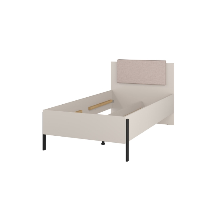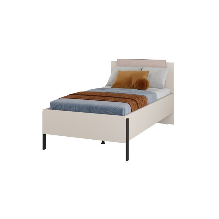 The Jukon 100 Type 34 bed by Helvetia Wieruszow is a single bed, perfect for youth rooms or smaller rooms. The structure was made of furniture board in the color of cashmere, which is a subtle, universal and pleasing to the eye shade that fits into a variety of design concepts. The headrest is partially finished with upholstery, which gives it additional charm and increases the comfort of use.