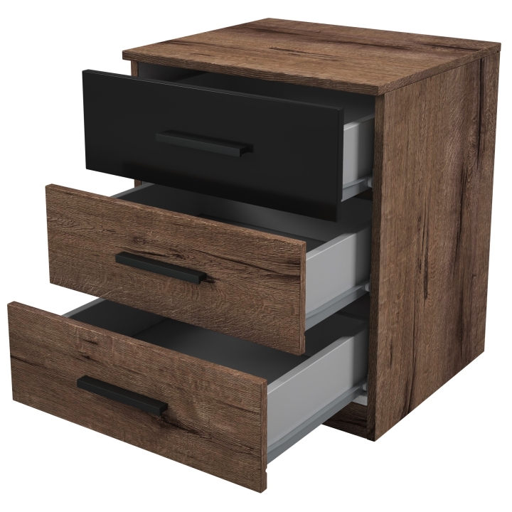 The Galaxy bedside table by Helvetia is an indispensable element of every bedroom and serves not only as a helpful place to store small handy items, but can also be an excellent decoration of the room. The Galaxy line furniture is characterised by its innovative design and high quality workmanship. With three drawers, the cabinet provides plenty of storage space for essential items within easy reach. You can easily store your books, alarm clock, bedside lamp and other things you want to keep close to your bed. This keeps everything tidy and easily accessible.