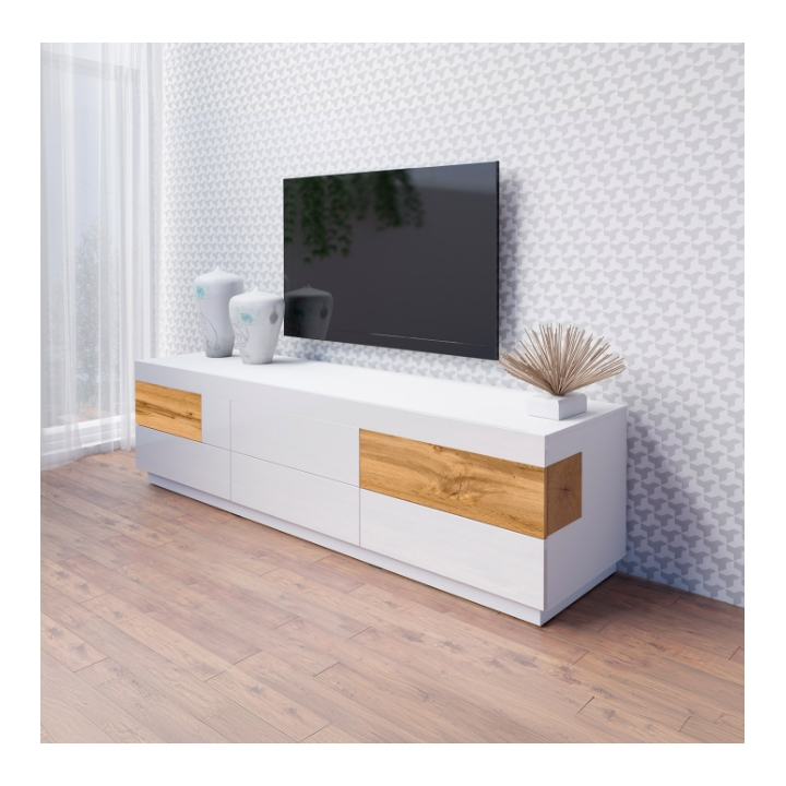 Are you looking for an entertainment centre that blends harmoniously into the design of your living room and at the same time offers practical storage space? The Type 40 RTV chest of drawers from the Silke collection is the perfect combination of functionality and modern aesthetics. The elegant lines and refined design details reflect the latest interior design trends, and the availability of different colours makes it possible to tailor the chest to individual preferences. The clever design of the RTV chest with space for audio-visual equipment and additional drawers ensures that everything will find its place. The high-quality materials of which it is made ensure durability and resistance to everyday use. The Type 40 RTV chest of drawers from the Silke collection is not only a practical piece of furniture, but also a distinctive decorative element that will enrich any space. Its addition to your living room will bring an impression of modernity and refined elegance.